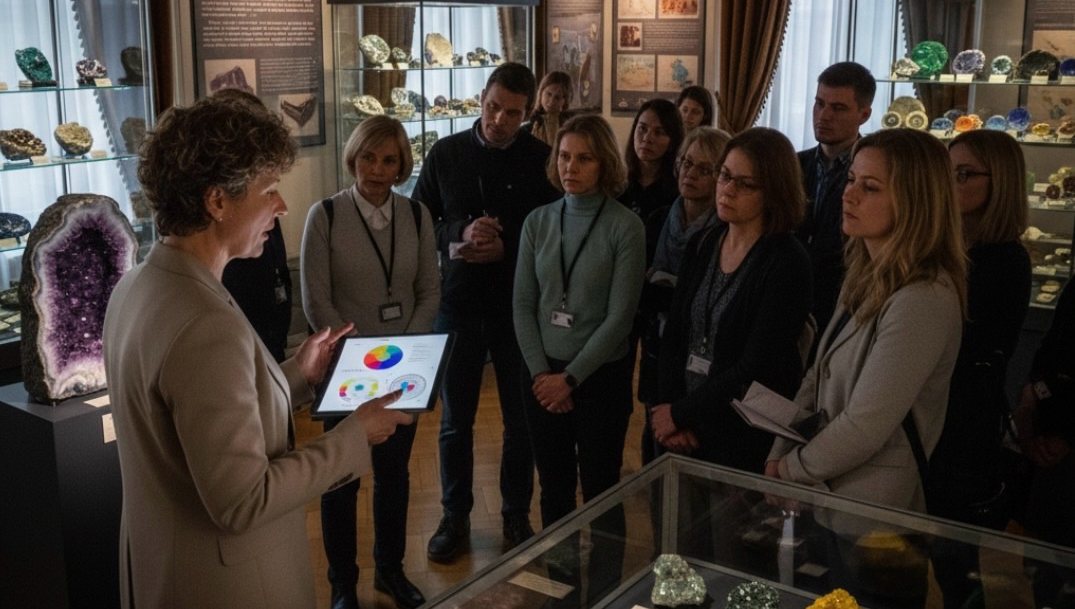 Приглашаем вас на увлекательную экскурсию, где вы узнаете, какие загадки скрывают названия минералов и какие цвета может создавать природа! Вы познакомитесь с редкими и известными самоцветами - от фиолетового аметиста и зеленого нефрита, до огненного эвдиалита и причудливо расписанных агатов.