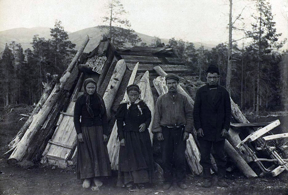 Экостровские саамы Петр Сорванов и Осип Архипов с женами. Около 1908 г.