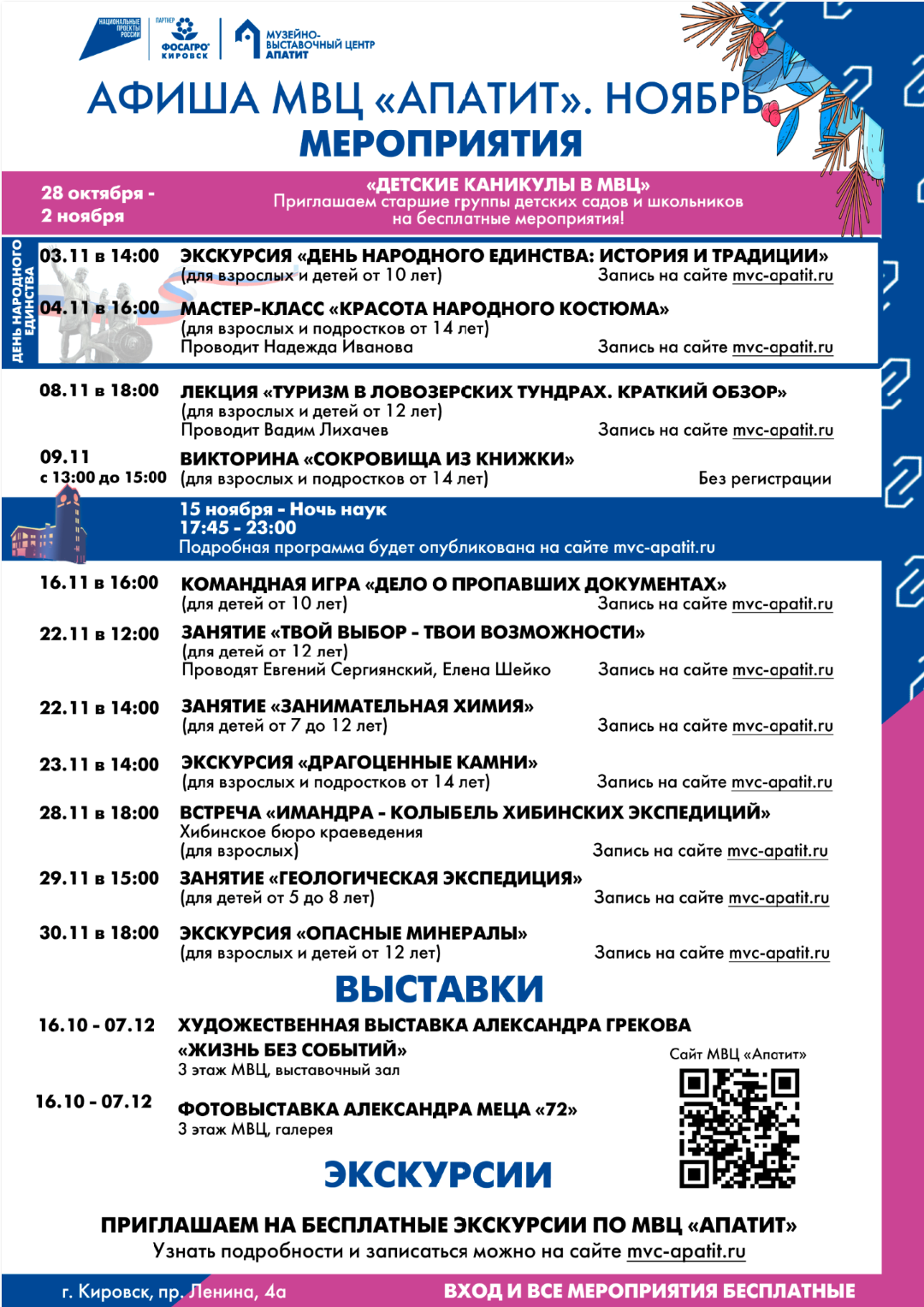ЗАПИСАТЬСЯ НА МЕРОПРИЯТИЯ: mvc-apatit.ru/events