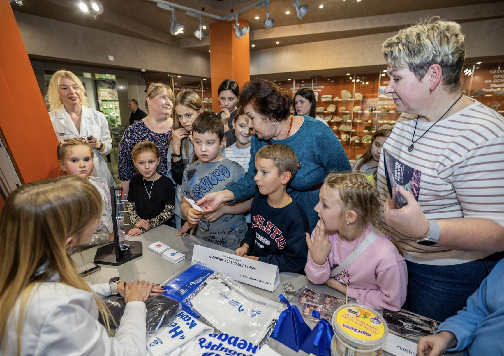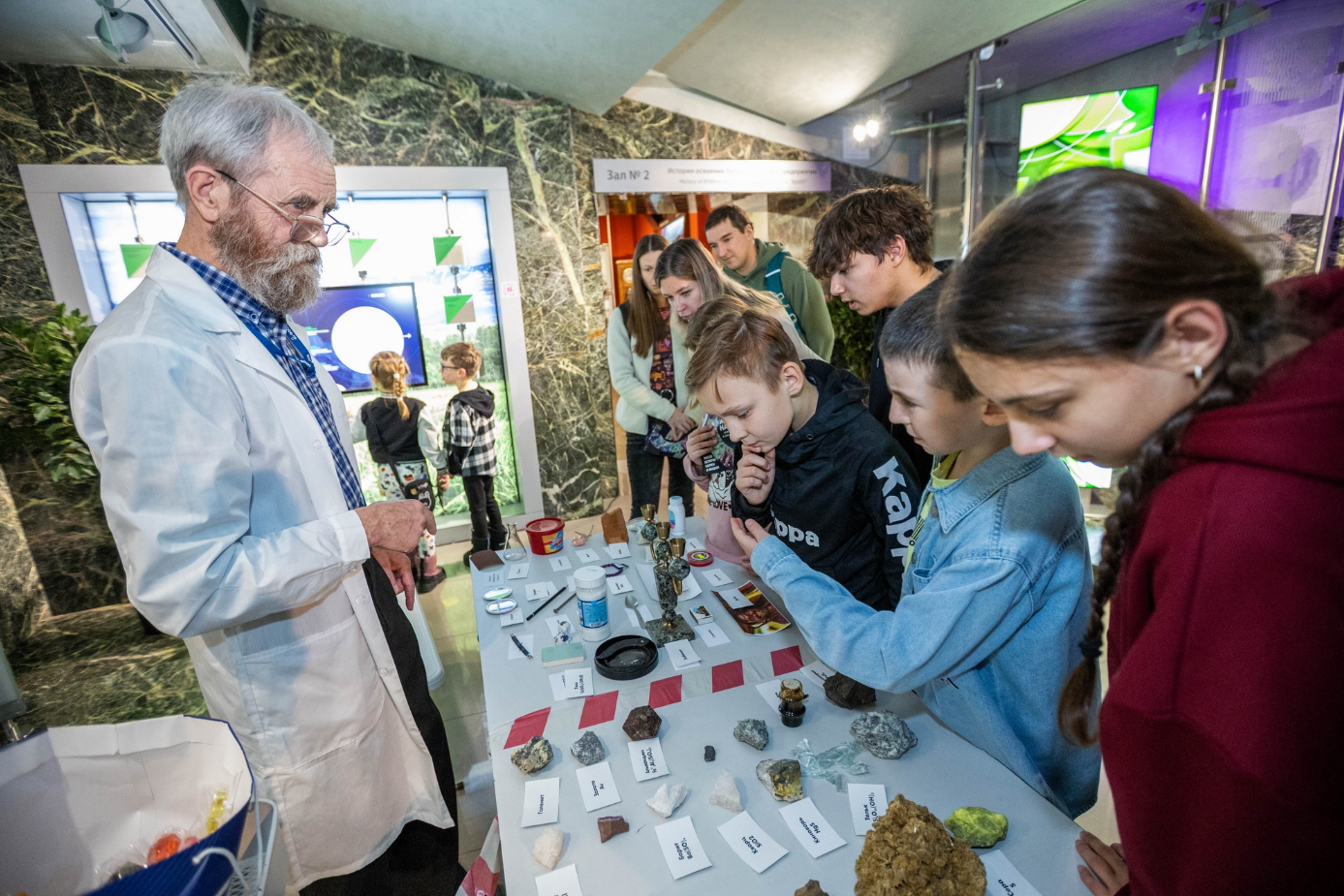 Конечно, Ночь наук призвана пробуждать у посетителей музея стремление к собственным исследованиям.И все это было! На занятии «Найди лишний минерал» знакомились с методами диагностики минералов, а в «Экспериментариуме» изучали бытовые предметы и продукты, узнавали, как работает принцип очистки природы от нефтяных загрязнений, как на организм влияет высокое или низкое давление, и даже как удержать воду решетом.