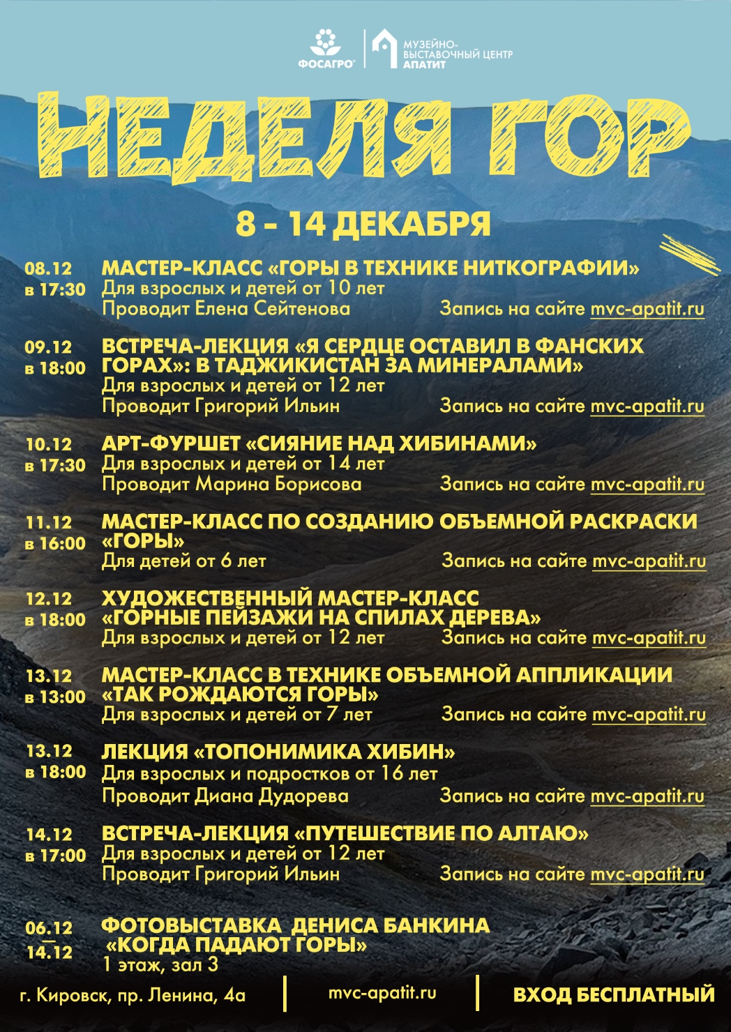 С 8 по 14 декабря Музейно-выставочный центр традиционно проведет Неделю гор, приуроченную к празднованию Международного дня гор, который отмечается 11 декабря.